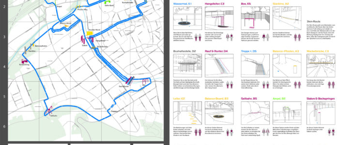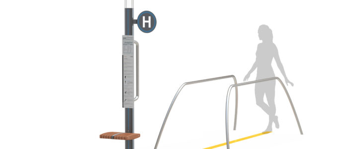 Der generationenübergreifende, dezentrale Fitnessparcours bringt den Sport in die Stadt. Egal ob beiläufig beim Stadtbummel, beim Warten an der Bushaltestelle oder als Teil der persönlichen Jogging-Strecke.